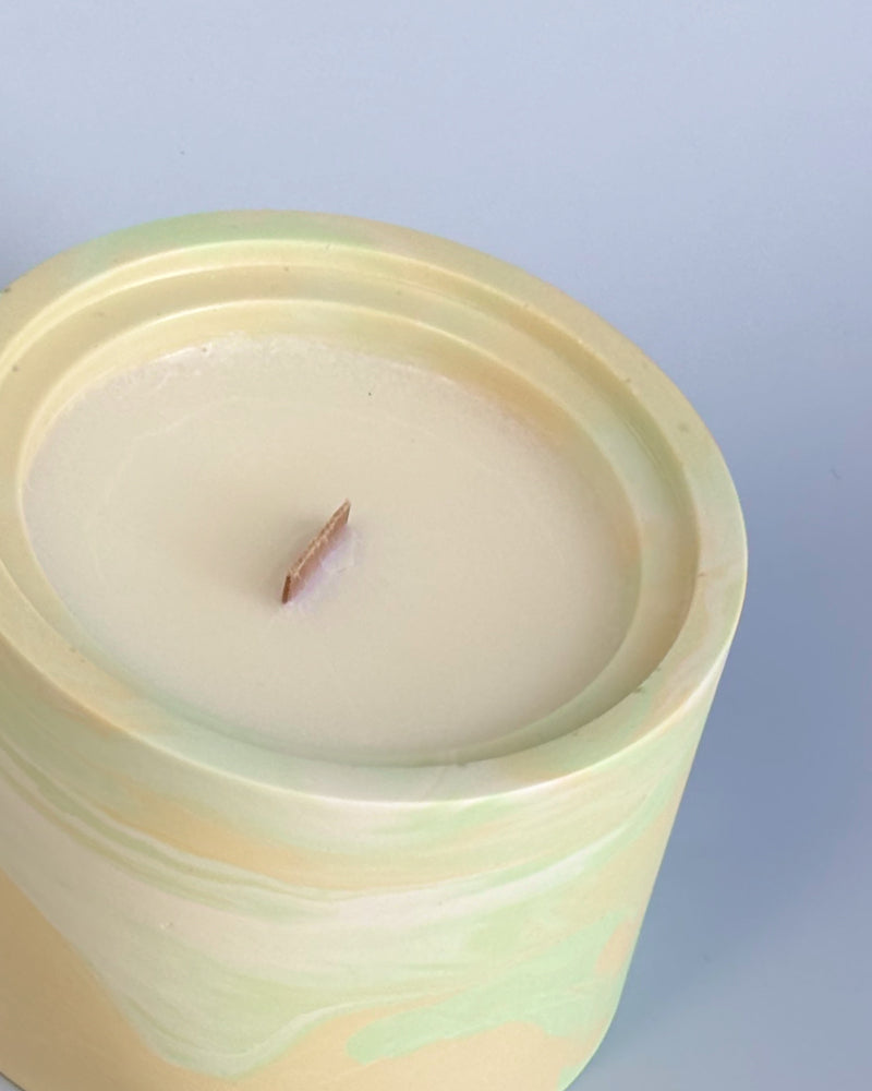 Skład: naturalny wosk sojowy, kompozycja zapachowa, eko knot drewniany.